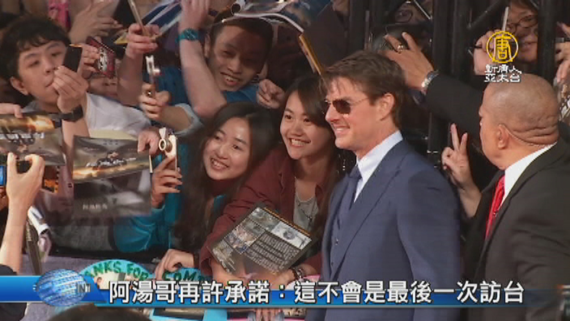 【新唐人亞太台 2017 年 05 月 26 日訊】歡迎回來。好萊塢巨星湯姆克魯斯,昨晚出席新片《神鬼傳奇》的首映典禮,阿湯哥在紅毯上親切地接受採訪與粉絲互動,時間長達兩個小時,而且也他再度許下承諾,說這絕不會是,他最後一次來台灣。