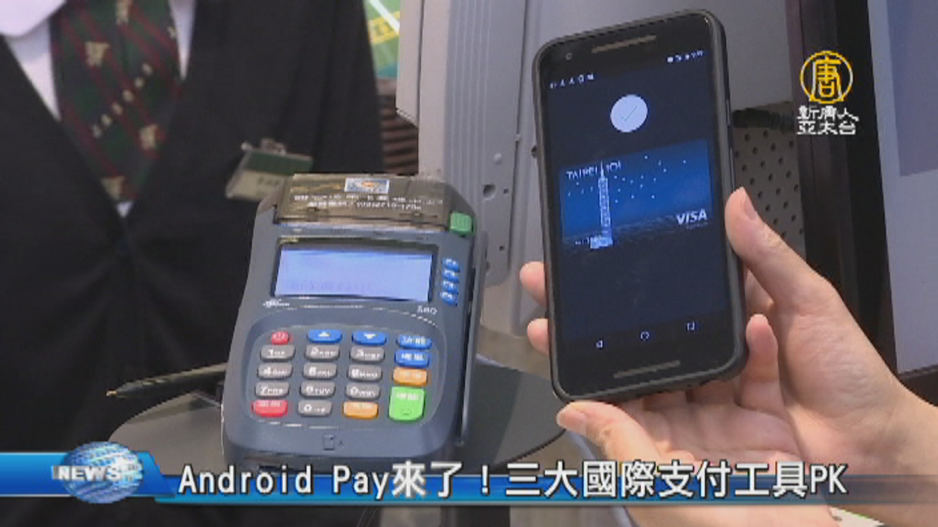【新唐人亞太台 2017 年 06 月 01 日訊】Android Pay 進入台灣市場,國際三大行動支付品牌全數登台,Google表示看好台灣市場,智慧型手機滲透率高,電子商務快速成長,未來在Android平台手機都能使用,也與Google map串聯提供廠商優惠訊息。