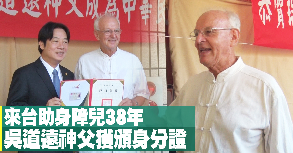 來台助身障兒38年 吳道遠神父獲頒身分證