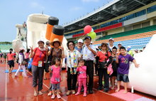 中正技擊館此次也專為100名特殊學生,提供安排活動區域,當特教孩子見到現場的遊戲氣墊,均顯現出興奮的表情,更是開心的合不攏嘴,在氣墊城堡裡來回蹦跳,笑聲不絕於耳。
