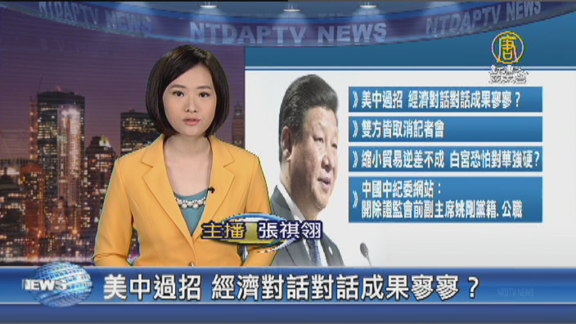 【新唐人亞太台 2017 年 07 月 20 日訊】新聞頭條,帶來關心,美中高層經濟對話,今天,並沒有取得實質的進展。美中雙方,都取消了原定週三下午,召開的記者會。如果不能採取實質性措施,來縮小對華貿易逆差的話,白宮將有可能,不得不考慮改變對中國的態度。而另外,中國內部,對於金融體系維穩打貪的強度,倒是完全沒有停緩的跡象,今天,中國中紀委網站上就發布,證監會前副主席姚剛,違反政治紀律,搞政治攀附,破壞市場秩序,遭到開除黨籍、以及公職。