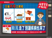 【新唐人亞太台 2017 年 07 月 30 日訊】尼莎颱風挾帶豐沛雨量襲台,造成多處地區及道路積水,且海棠颱風接力而來,民眾需嚴防豪雨。疾管署呼籲,民眾災後務必加強環境整頓,清理家園時務必做好個人防護,並留意飲食衛生,並建議民眾落實三項防疫措施,以降低傳染病感染風險: