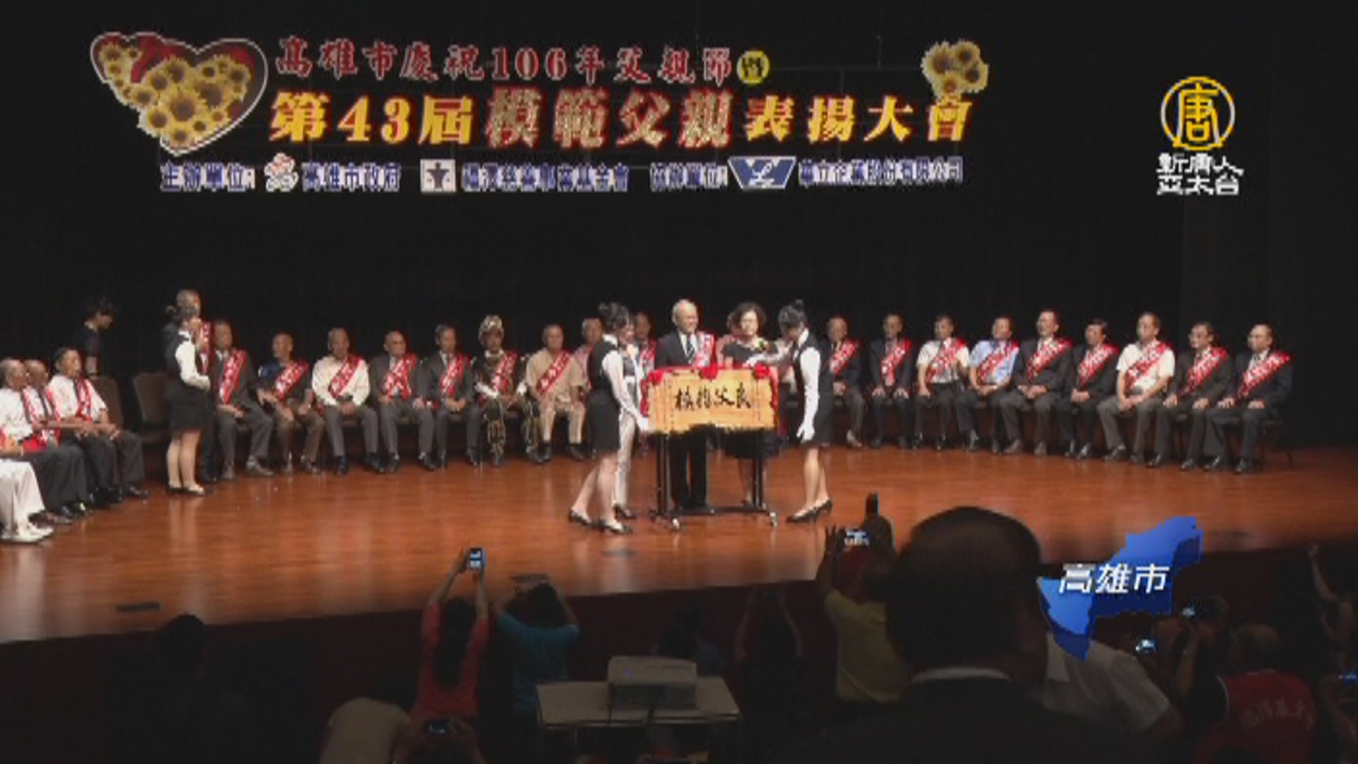 【新唐人亞太台 2017 年 08 月 06 日訊】父親節就要到了,高雄市政府舉辦模範父親表揚,副市長許銘春、高雄市議會議長康裕成都出席大會,並致贈匾額及紀念品給每一位傑出父親,場面溫馨感人。