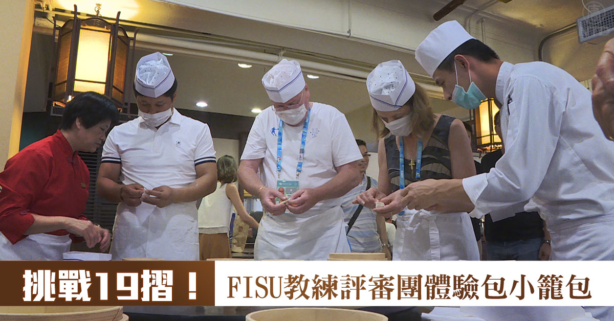 戴上廚師帽,FISU貴賓和教練評審們,來體驗包小籠包。