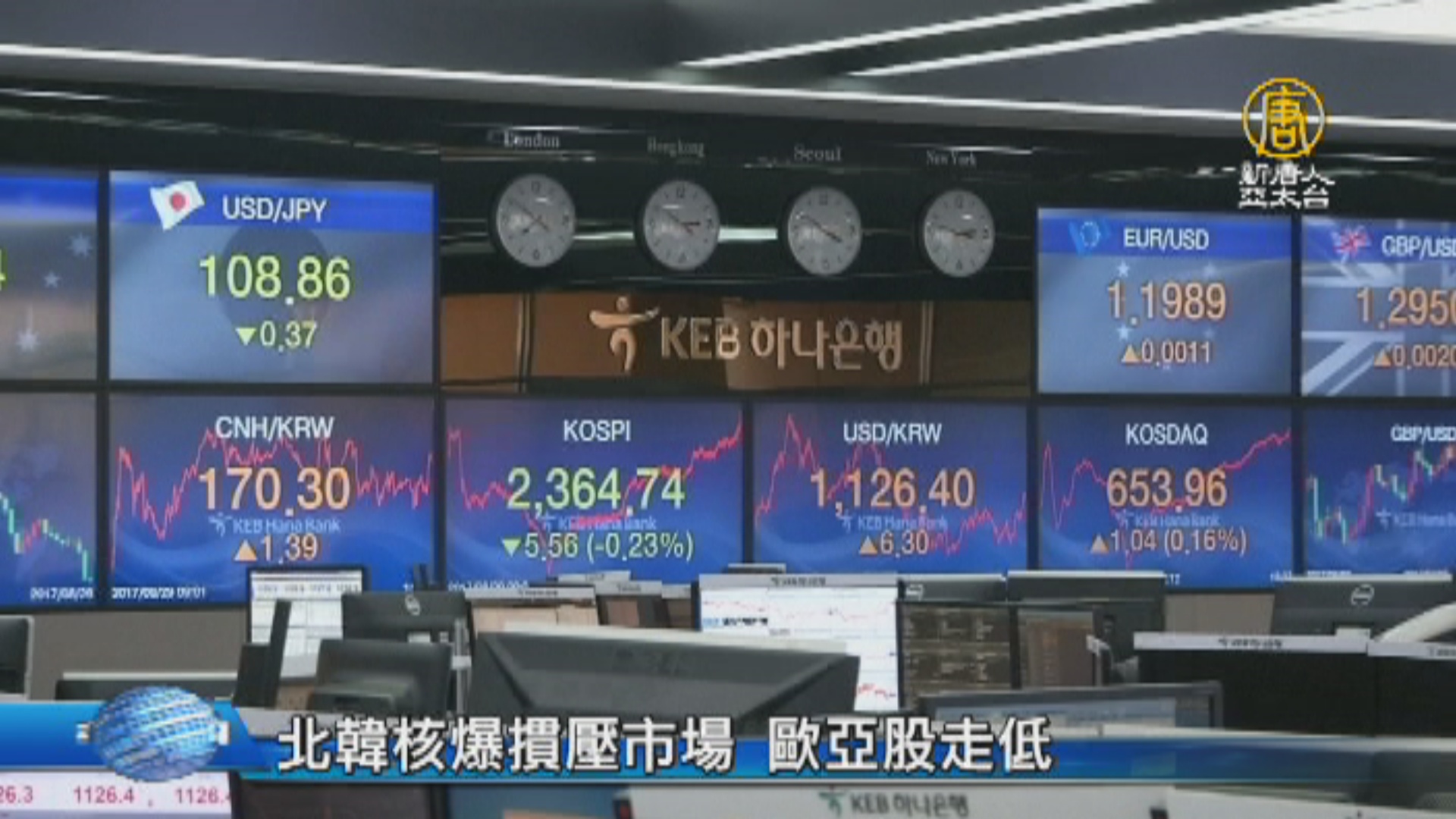 【新唐人亞太台 2017 年 09 月 05 日訊】好,南韓情報官員透露,有跡象顯示北韓準備再次試射彈道飛彈,時間最快可能選在9日的北韓國慶日。東北亞局勢升溫,讓全球股市賣壓出籠,南韓股匯首當其衝,而不只亞股嚇跌,歐股也跟著走低,相較起來,台股跌幅僅0.24%、中國股市更小漲0.37%,表現相對突出。主要原因,是外界預期,美國不會以武力解決朝鮮半島問題。