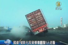 國道1號彰化段貨櫃車翻覆5人送醫