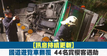國道遊覽車翻覆 44名賞櫻客遇劫