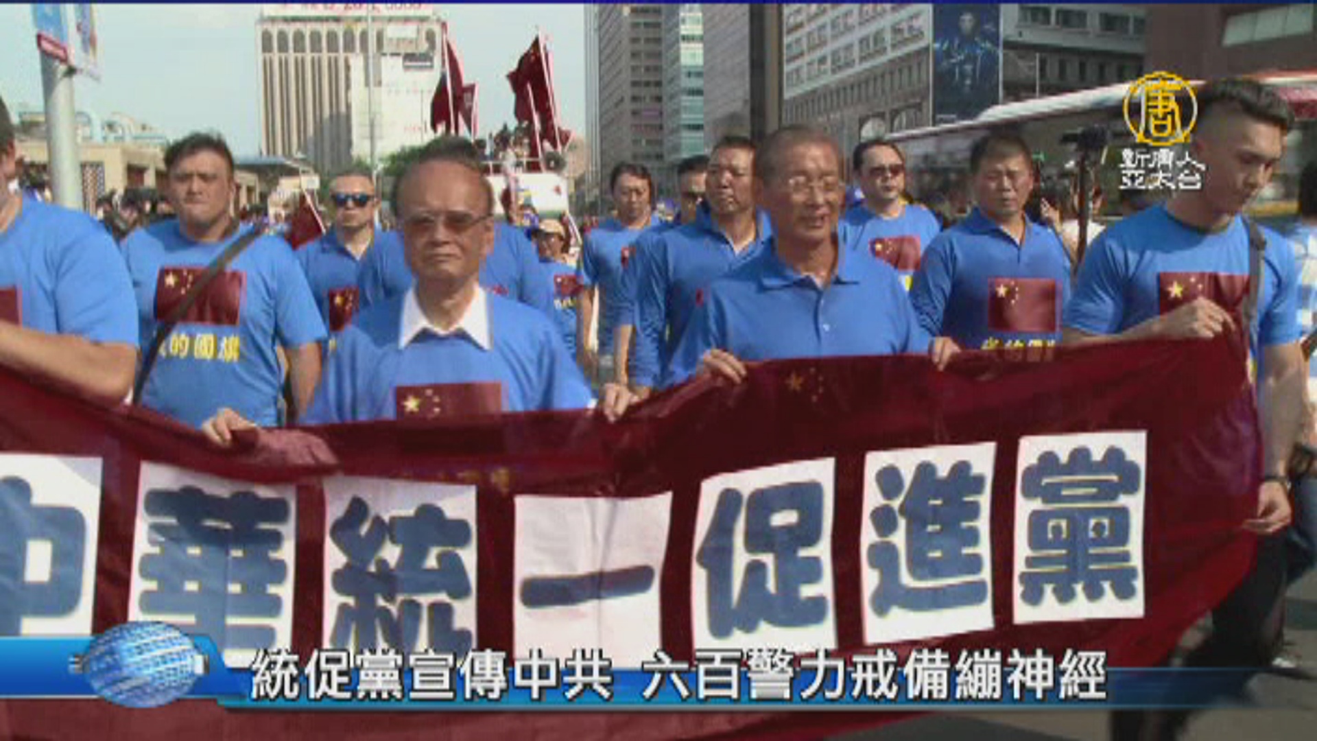 【新唐人亞太台 2017 年 10 月 01 日訊】再來看到,日前涉及台大濺血案的中華統一促進黨,今天下午率眾,打著五星旗在台北車站周邊示威遊行,警方調派約600名警力,沿途戒備。