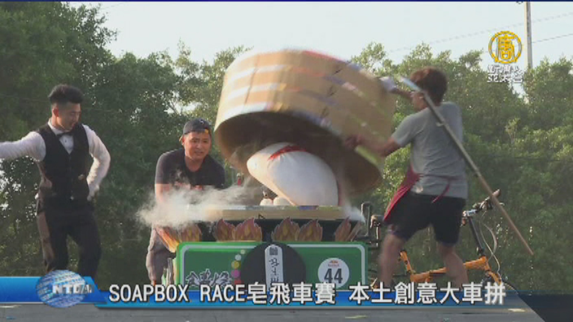【新唐人亞太台 2017 年 10 月 01 日訊】第2屆SOAPBOX RACE 皂飛車大賽在桃園國立體育大學舉辦,選手們駕駛肥皂盒子DIY飛車,靠著斜坡重力加速度,克服高難度的彎道及跳台障礙,不只比速度,也比創意來爭取佳績。