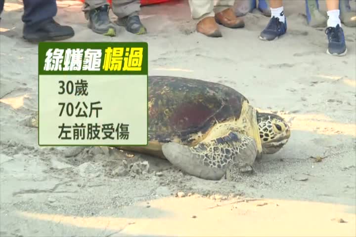 【新唐人亞太台 2017 年 10 月 01 日訊】綠蠵龜擱淺在台東海岸時有所聞,因此台東林管處與縣府特別舉辦野放海龜活動,其中有隻名叫「楊過」,因為被發現時,左前肢壞死遭截肢,經過獸醫的照料下,順利與其他4隻綠蠵龜,一起重返大海的懷抱。