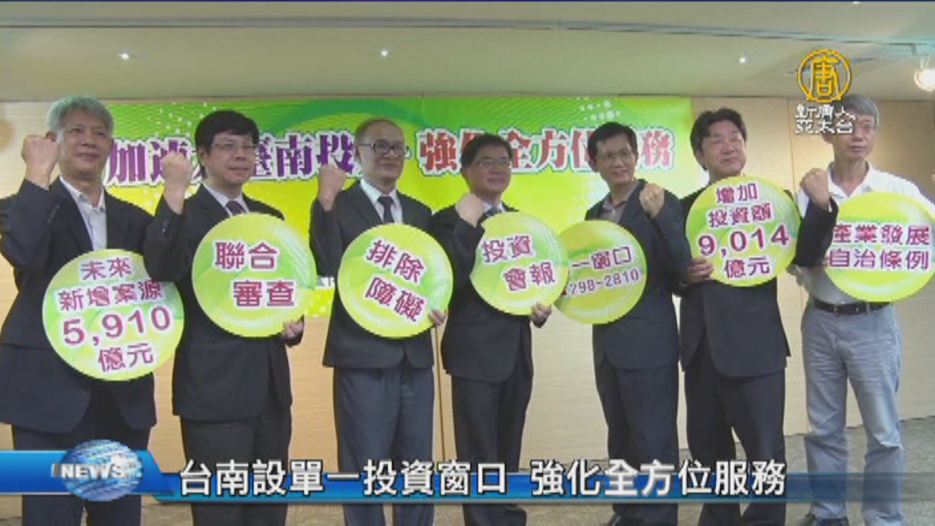 【新唐人亞太台 2017 年 10 月 13 日訊】為了吸引企業投資台南,協助企業排除投資障礙,台南市政府除了設立投資單一窗口,更擴大成立投資會報,以實際行動呼應行政院長賴清德,對於重要投資案的重視。