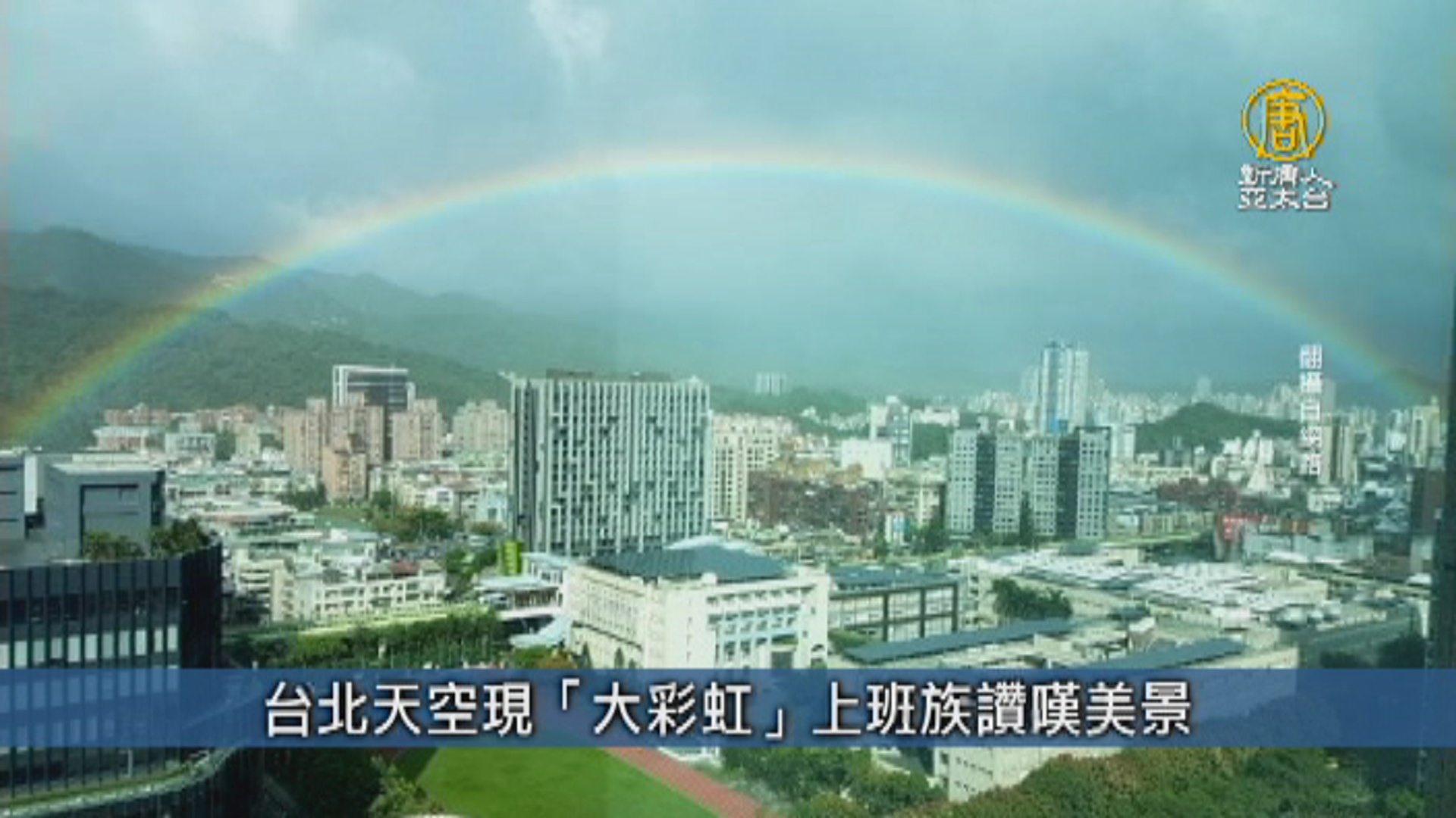 台北市這幾天一下子大雨,一下子放晴,17日下午近3點時,在內湖科學園區難得出現一道超完整的彩虹,上班族驚呼連連,紛紛搶拍美景。