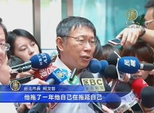 2016-07-09 20:49:02大巨蛋北市府與遠雄陷入僵局,遠雄集團董事長趙藤雄昨天再度向市府喊話,說如果不喜歡遠雄,就快點交給別人蓋,台北市長柯文哲則表示,遠雄自己拖延了自己一年,不曉得遠雄在想什麼。