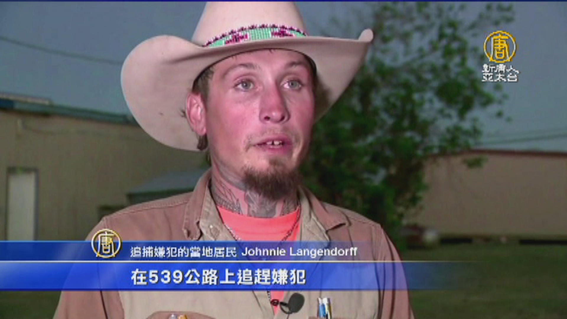 追捕嫌犯的當地居民 Johnnie Langendorff:「我們開車跟著他,車速每小時140公里,最快達到152公里,在539公路上追趕嫌犯,直到他的車開始失控,撞上路邊溝渠。」
