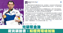 光榮奪金後 戴資穎臉書:盼體育環境加強