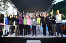 桃園市長鄭文燦率領千名桃園『在地家鄉成員』為2017桃園半程馬拉松 石門水庫楓半馬-前進國際認(桃園市府提供)