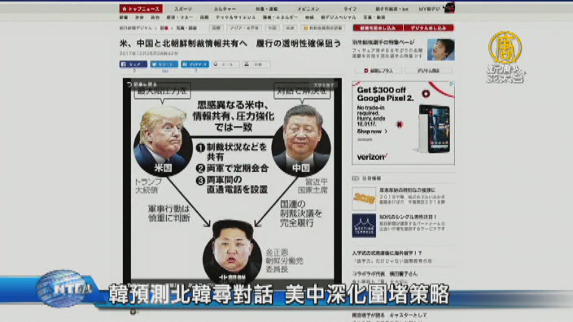 【新唐人亞太台 2017 年 12 月 27 日訊】歡迎回來。南韓統一部週二預測,北韓明年可能會尋求與美國對話,同時加速發展核導彈能力,要讓國際社會承認,北韓的擁核國家地位。而美國也採取最新制裁行動,宣布要凍結兩名北韓官員的所有資產,這兩人都是金正恩愛將,並在北韓發展彈道飛彈上,扮演重要角色。