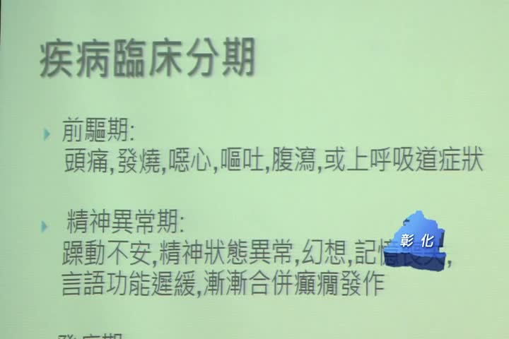 彰基中風暨神經加護病房主任 邱駿清:「(初期症狀)發燒、頭痛、噁心、嘔吐,接下來比較戲劇性的話,他會產生精神方面的一個異常症狀,所以他一開始常常會被當成是一個精神疾病的患者,然後去就醫。」