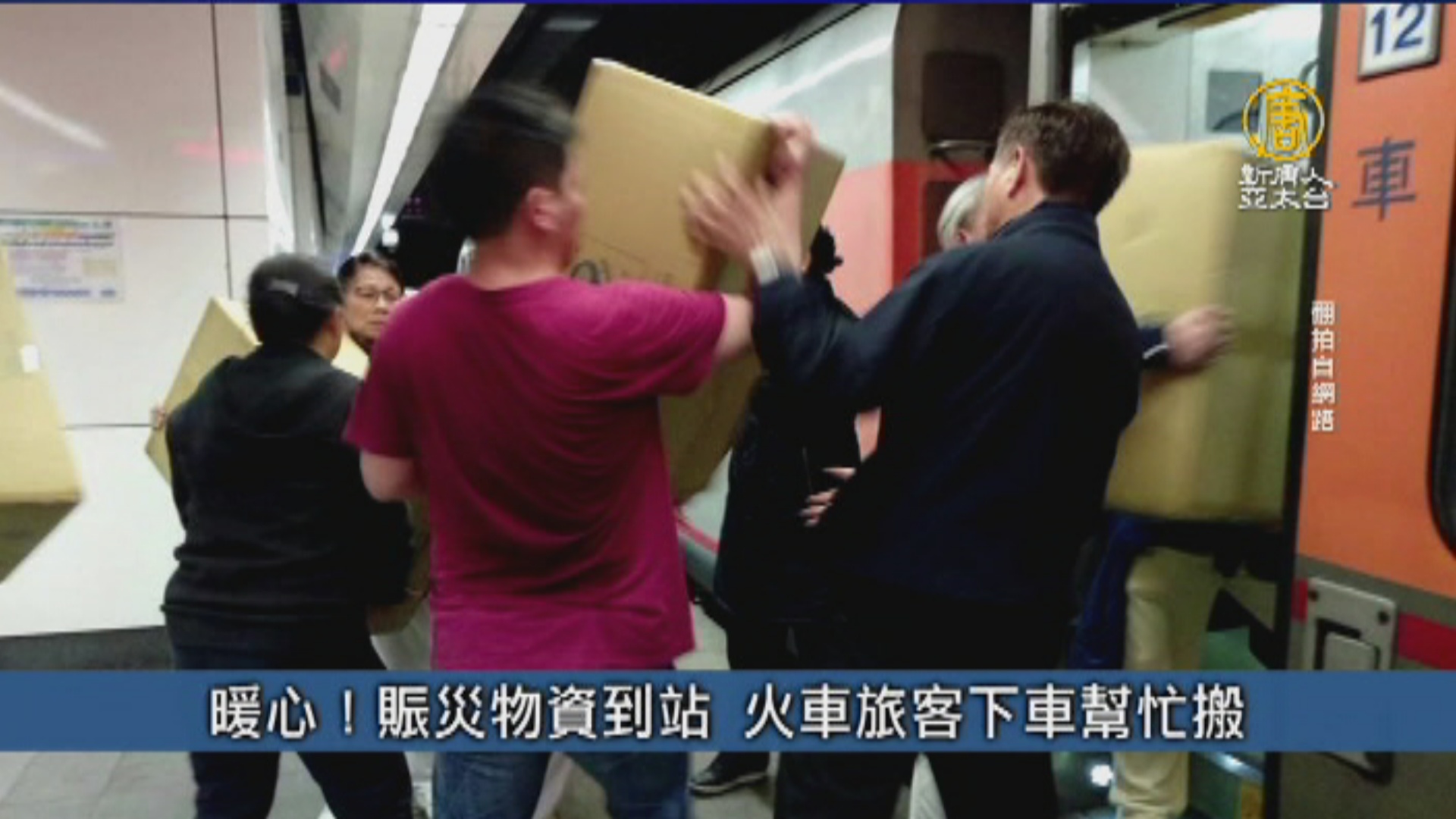暖心!賑災物資到站 火車旅客下車幫忙搬