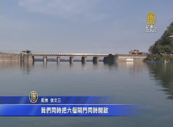 船長 張文三:「有六個閘門,一個閘門就六噸重,颱風來的時候,水進來很大,我們同時把六個閘門同時開啟,這個就是我們電視上看的到,石門水庫洩洪的地方。」