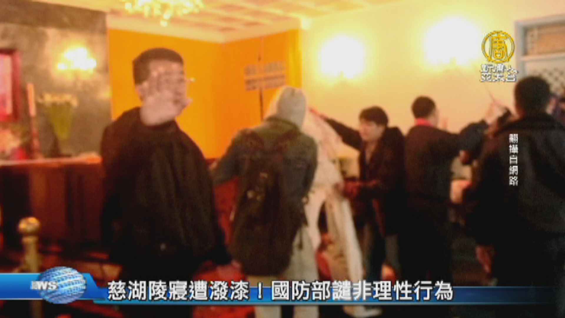 【新唐人亞太台 2018 年 02 月 28 日訊】桃園慈湖蔣公陵寢今天遭民眾闖入潑灑紅漆,獨派青年團體拍攝潑漆過程,將影片放上網路,聲稱要清除權威遺址,將象徵受難者鮮血的紅漆潑撒在靈柩上。對於民眾激進的行為,國防部後備指揮部表示相當遺憾,已報請警方與憲兵隊處理,陵寢也將暫停開放進行復原,同時加強保安工作,防止類似事件再發生。