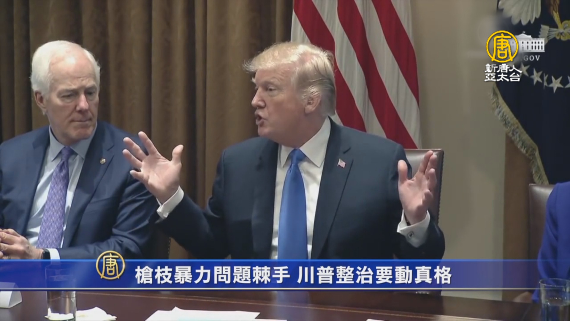週三,川普總統在白宮與兩黨議員開會,繼續探討槍枝與校園安全問題。