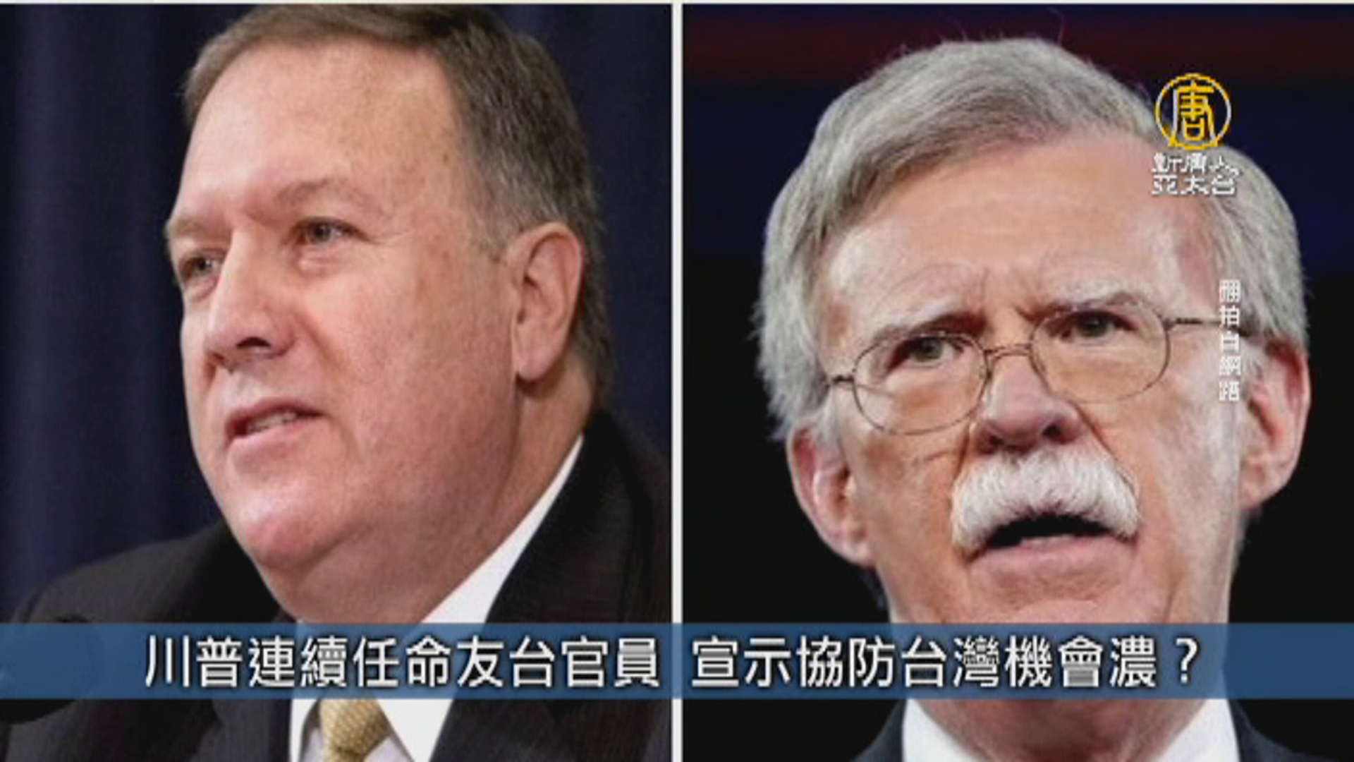 美國總統川普近來任命的新國務卿蓬佩奧(Mike Pompeo)、國安顧問波頓(John Bolton),皆被視為是友台派。有學者認為,兩人的上任將會替白宮打造出一個堅強團隊,美國也有可能藉此機會,向中國宣示協防台灣的決心。
