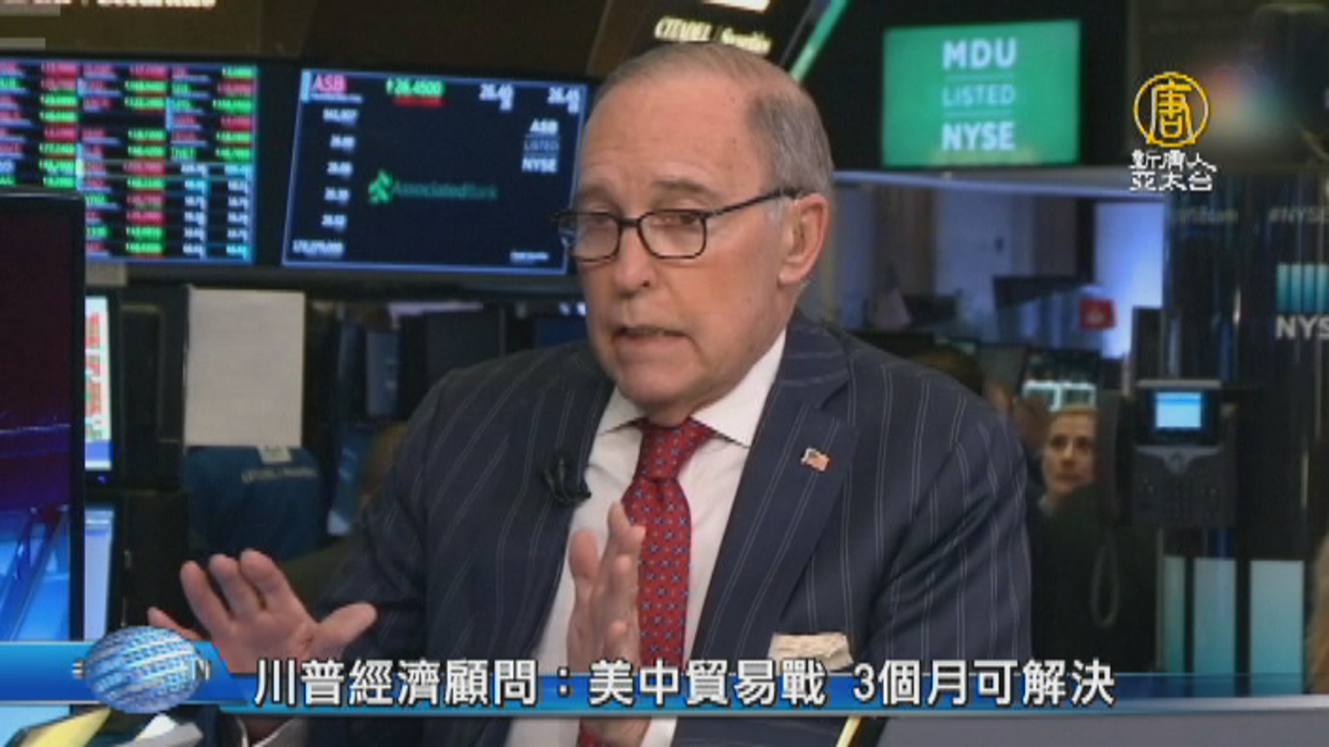 【新唐人亞太台 2018 年 04 月 07 日訊】再來關心,美中貿易戰,雙方各向對方500億美元產品課徵關稅,川普昨天還說,因為中共的報復性關稅,考慮再對中國產品課徵1000億美元的關稅,川普首席經濟顧問庫德洛指出,目前為止中共的回應都「令人非常不滿意」,不過。美國談判大門仍保持開放,他認為美國和中國的貿易爭端將在3個月內結束。