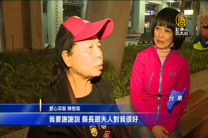 愛心菜販 陳樹菊:「我在那賣菜賣五十幾年,是台東人的錢讓我賺,我會回饋在台東,這任的縣長跟縣長夫人,對我很好。」