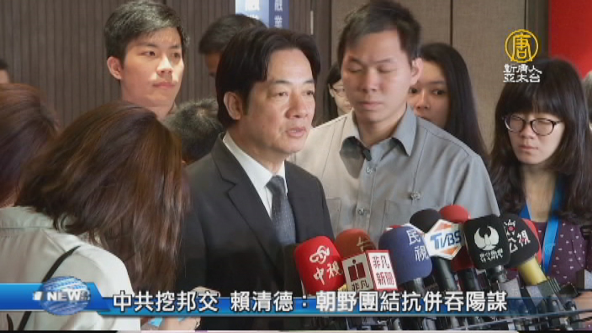 【新唐人亞太台 2018 年 05 月 02 日訊】台灣友邦多明尼加,遭到中共挖角,今天行政院長賴清德出席公開行程時表示,朝野應該共同對抗中共併吞台灣的陽謀。