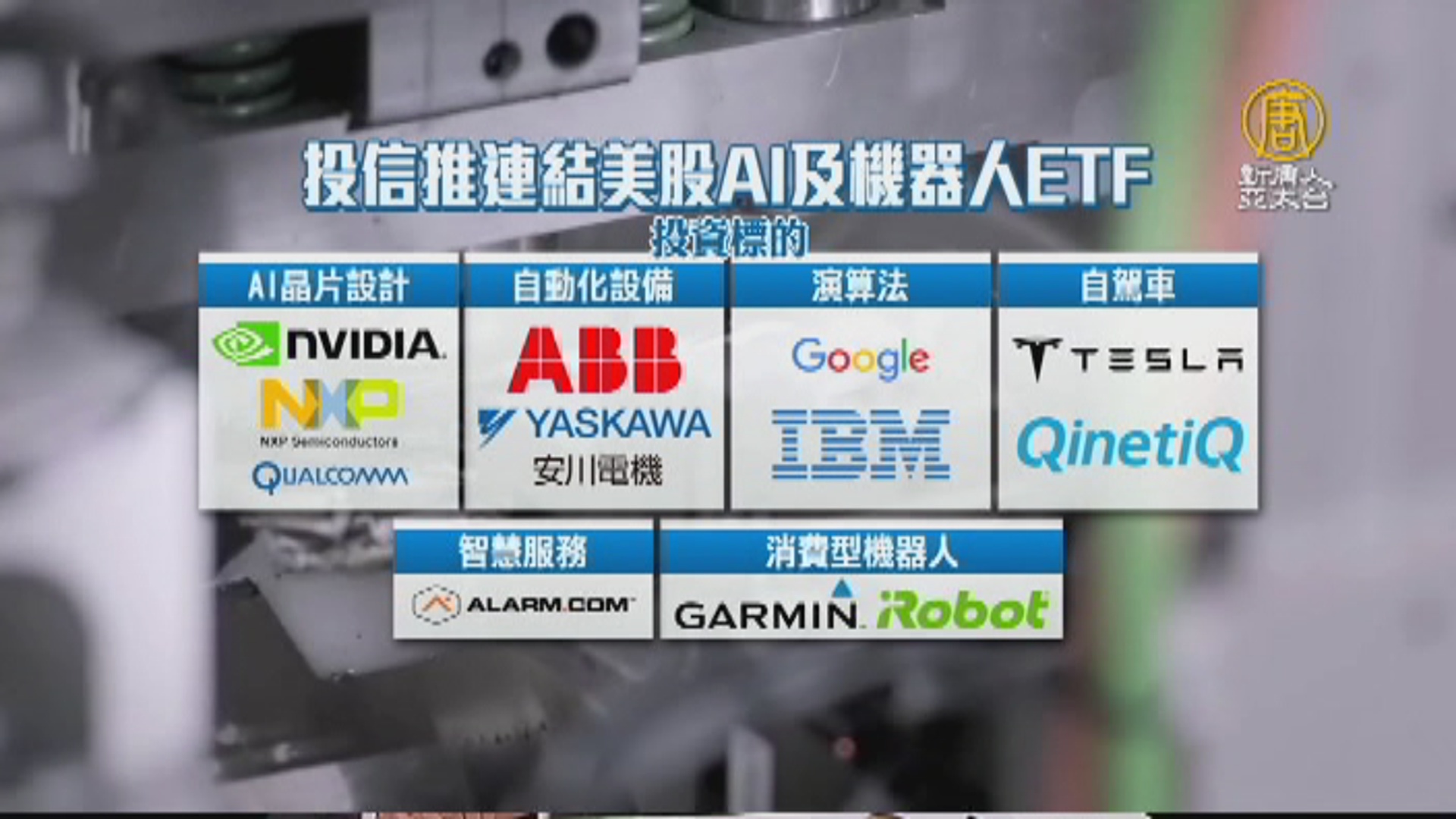【新唐人亞太台 2018 年 05 月 08 日訊】AI人工智慧、機器人應用日新月異,產業快速發展,今天就有投信金融業者,推出相關ETF金融商品,鎖定科技產業成長趨勢。