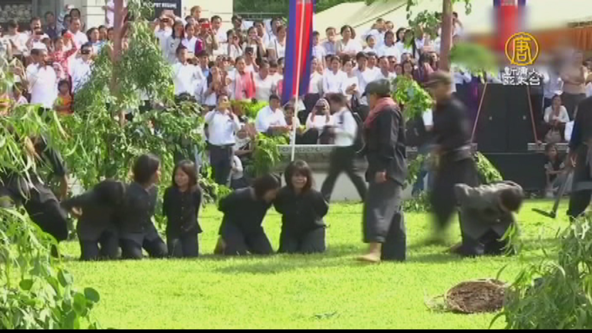 一些皇家美術大學的學生和文化藝術部和工作人員重現了據說在紅色高棉領導人波布的統治期間常見的迫害場景。