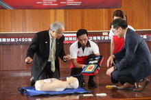 擔任中醫師的陳文豐,經陳文忠居中促成,由扶輪社與嘉義縣衛生局簽訂合作備忘錄,今天(30日)舉行捐贈儀式,現場由嘉義縣副縣長吳芳銘主持,新港鄉長林茂盛和國際扶輪3490地區2017-2018總監謝漢池等人都出席這場公益盛會,現場實作AED示範教學,工作人員教導與會貴賓正確的CPR加AED急救步驟。