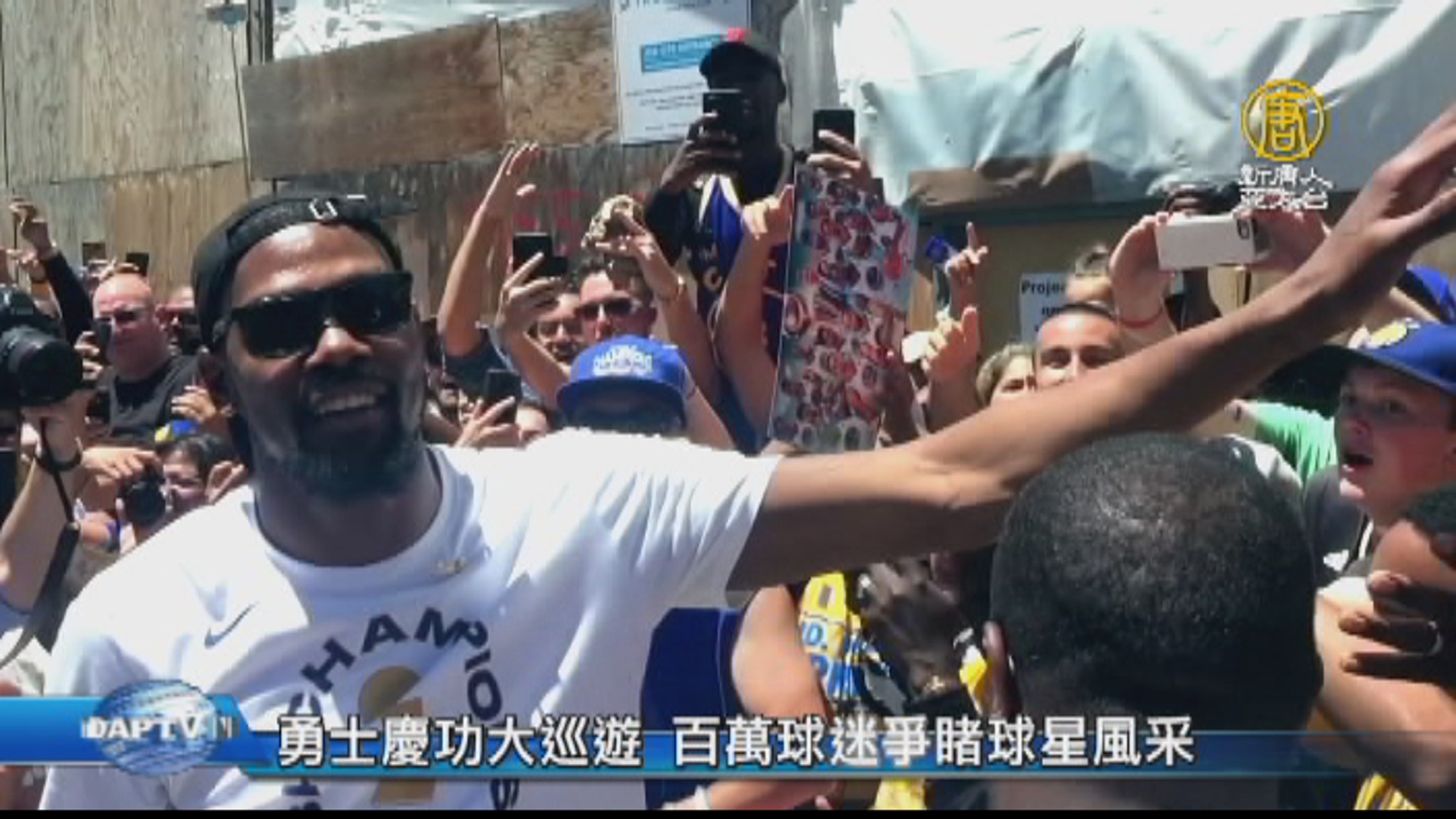 2017-06-16 20:43:19再次抱回NBA總冠軍獎盃的金州勇士隊,周四在主場城市加州奧克蘭舉行了盛大的遊行慶祝活動,超過150萬球迷參加。請看新唐人記者來自加州的報導。