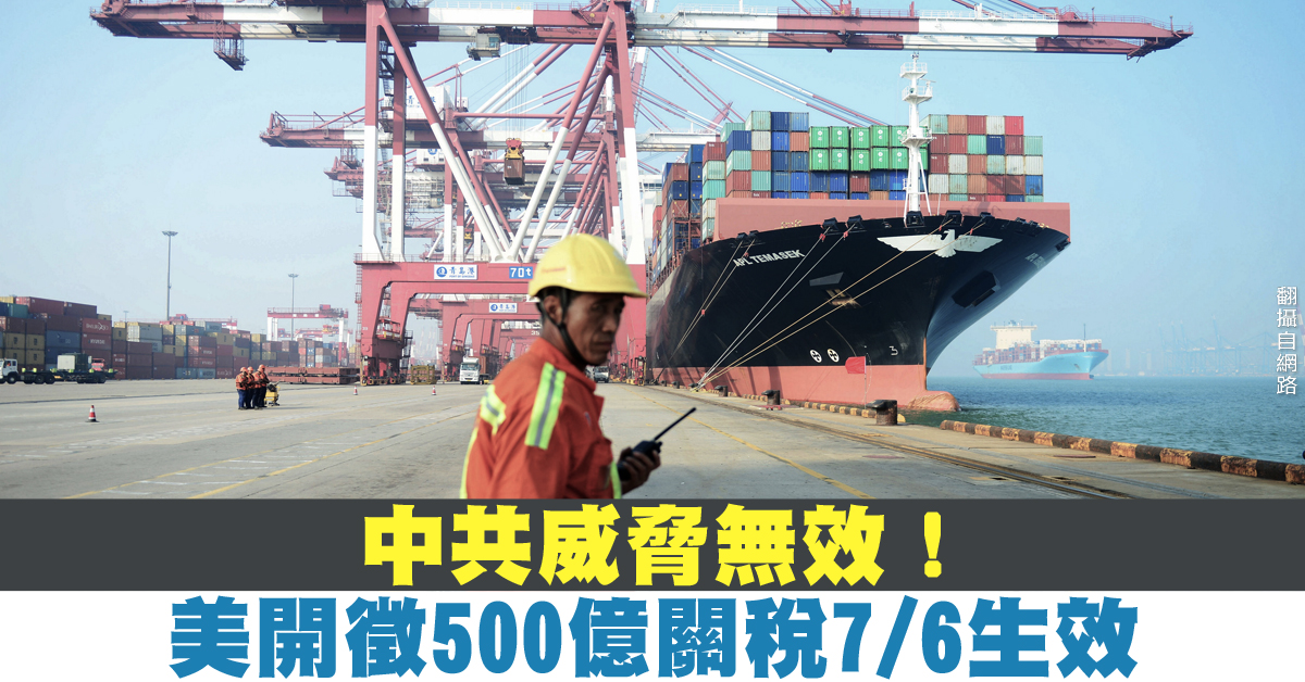 美國確定加稅後,中共財政部16號宣佈對等報復。自7月6號起,對同樣價值340億美元的美國農產品、汽車、水產品等545項商品,加徵25%關稅。