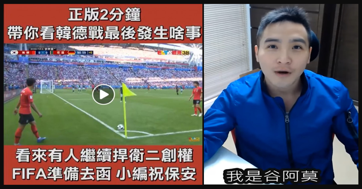 擅長「二創」的網紅谷阿莫製作世足影片搏取點閱率,但他發布的內容大量取材世足比賽轉播畫面,雖然事後緊急將影片下架,但愛爾達臉書小編繼日前發文提醒後,今天凌晨再度透露「FIFA已準備去函」,谷阿莫可能面臨FIFA求償。