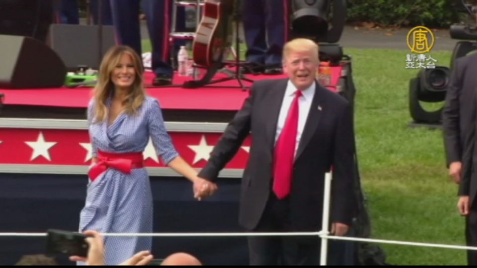 同時,川普總統及夫人梅拉尼婭還在白宮南草坪舉辦野餐會,款待軍人家屬。