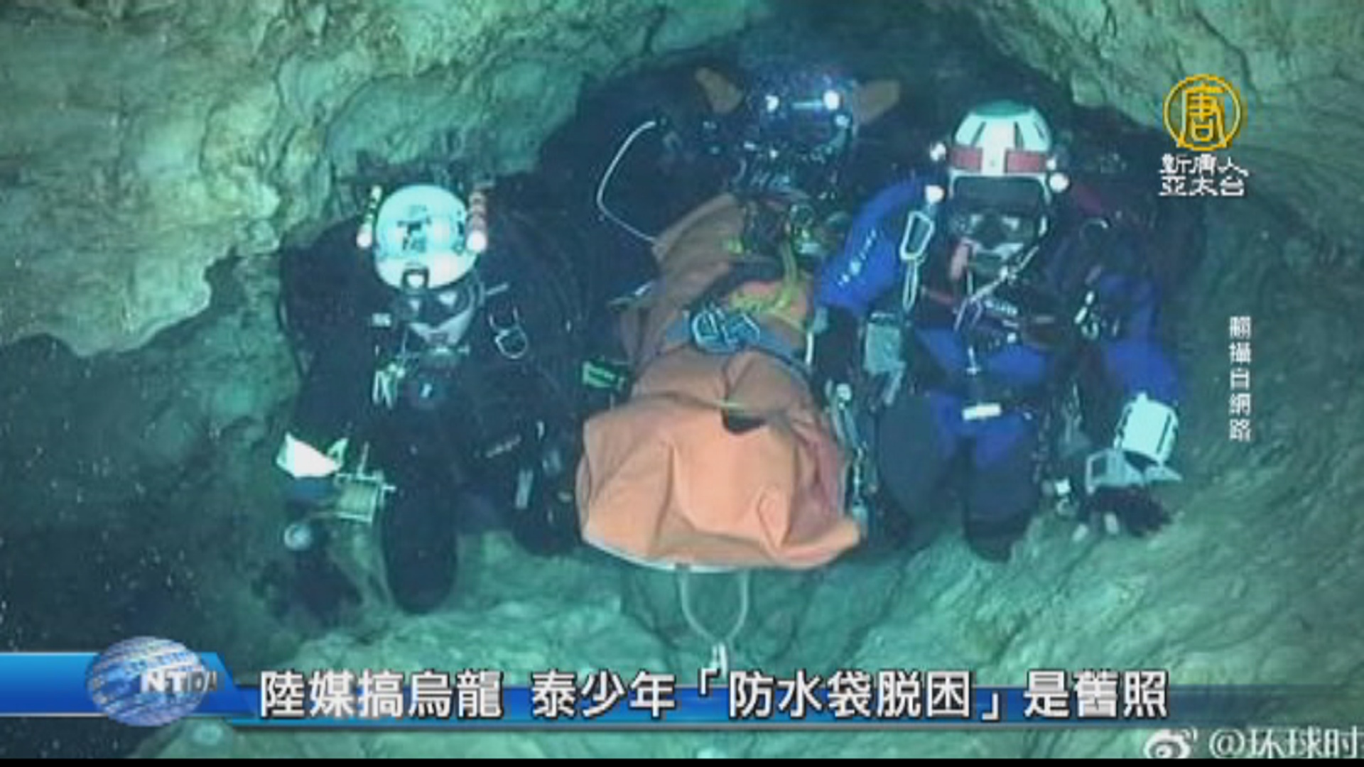 【新唐人亞太台 2018 年 07 月 09 日訊】好,泰國少年足球隊受困山洞,昨天有首批4名少年獲救。原先預計11小時的路程順利在9小時內完成。中共黨媒《環球時報》公布照片稱,這些少年是被包在大型防水塑膠袋裡,再讓潛水人員將他們帶出來。但有網友發現照片疑點重重,經查是法國救難隊,在8年前上傳YouTube的一段影片截圖,並非這次泰國救援的實際畫面。事實上,法國救難隊日前也曾建議,可用影片中的方式進行救援,讓不黯水性的少年,能在2名潛水員的協助下通過黑暗洞穴。
