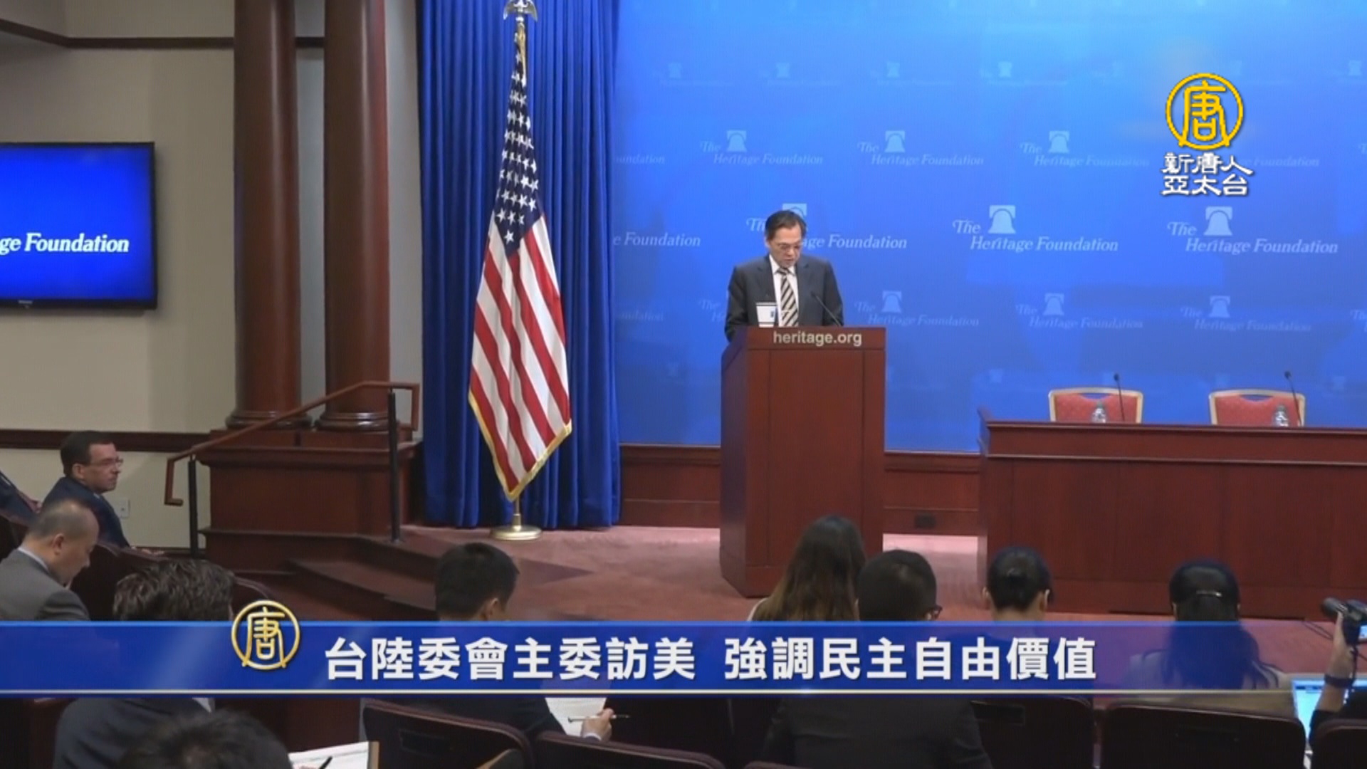 【新唐人亞太台 2018 年 07 月 19 日訊】再來看到,陸委會主委陳明通,上任來首次訪美,週三(7月18日)﹐在華府智庫傳統基金會,以「自由民主是兩岸關係發展的重要基石」為題﹐發表演講。美國國防部亞太事務助理部長薛瑞福,眾議院外委會亞太小組主席都出席,議員同時力挺台灣表示,正在敦促讓中華民國的國旗,重新放回美國國務院的官網上。