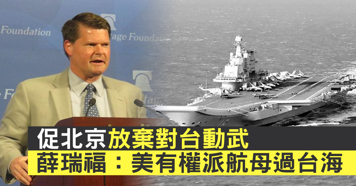 傳統基金會與台灣民主基金會,在華盛頓共同舉辦「兩岸關係的機遇與挑戰」研討會,薛瑞福應邀發表演說,他表示,自己以台灣的朋友為榮。薛瑞福說,美國的法律給予政府彈性,適當回應中共在台海的軍事活動,美國的安全合作與中共的威脅連結在一起,如果中共的這些軍事活動持續,美國會依法做出回應,他說,美軍有權派航空母艦通過台灣海峽。