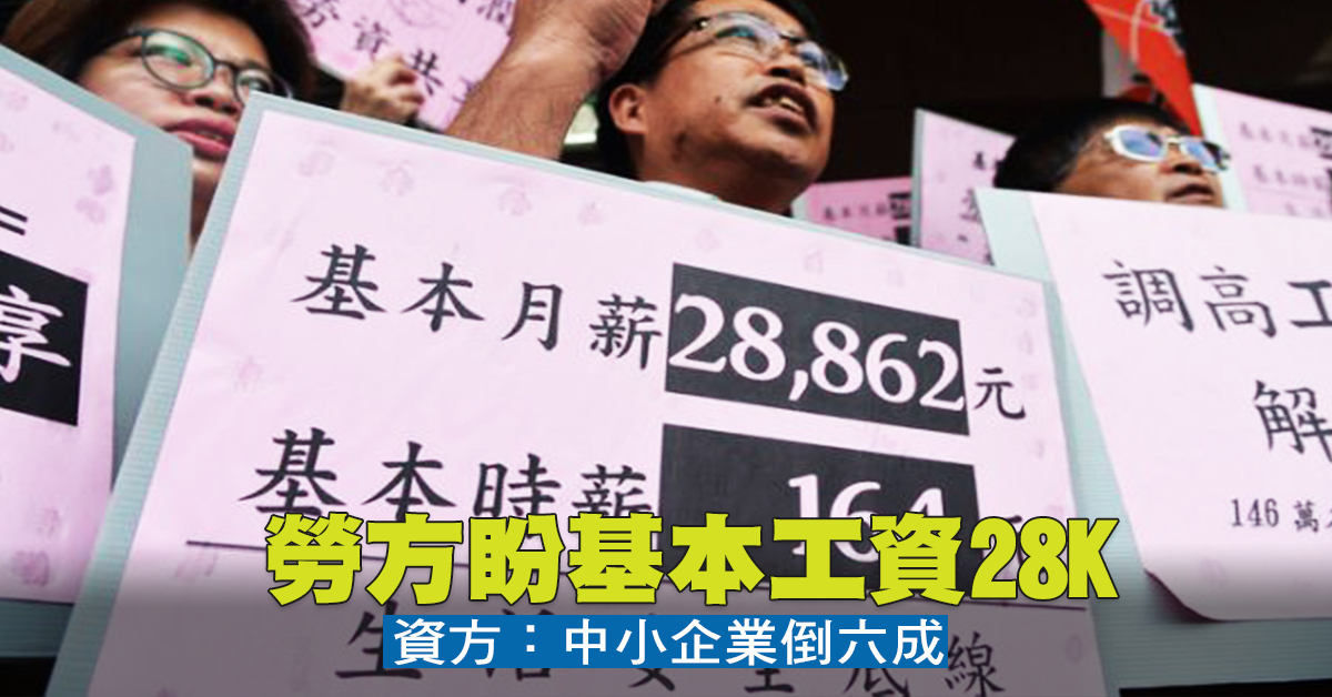 中華民國全國工業總會代表 何語:「(勞工喊28K)美金3萬3千塊的時候就可以。現在GDP只有24868塊沒有辦法。中小企業全部都會倒掉60%」