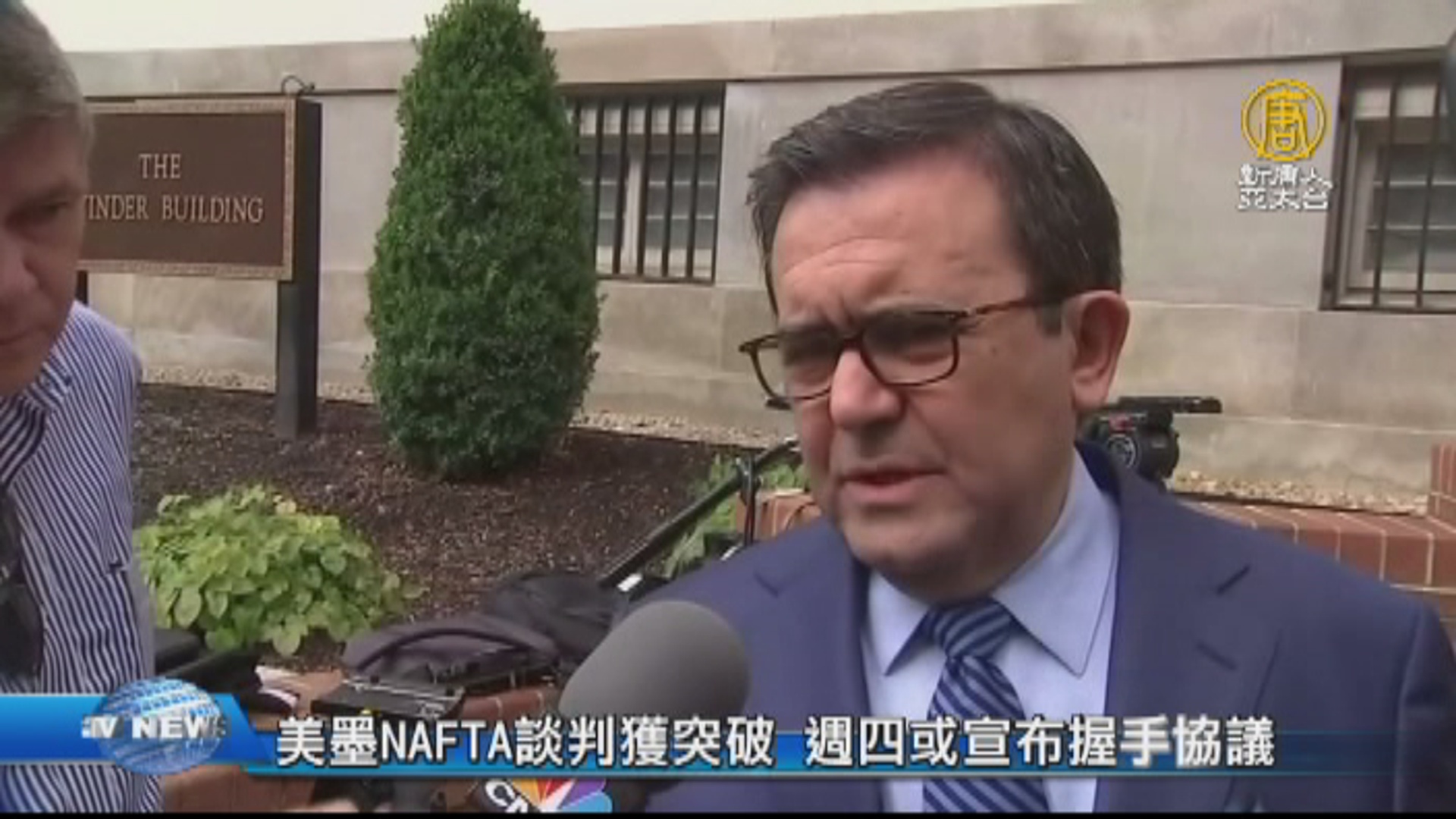 墨西哥首席貿易官員 瓜哈爾多:「確實是一個突破,我們希望,接下來的幾個小時,或者在數日內,就與美國達成北美自由貿易協定(NAFTA)的解決方案。」