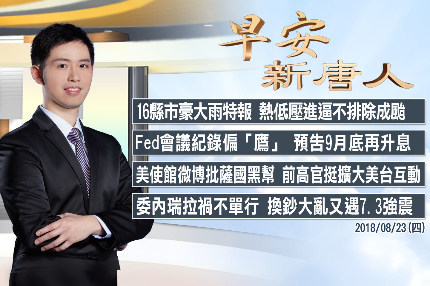 2018-08-22 08:05:51八月22日,星期三,早安新唐人,30分鐘,帶您看見全世界。