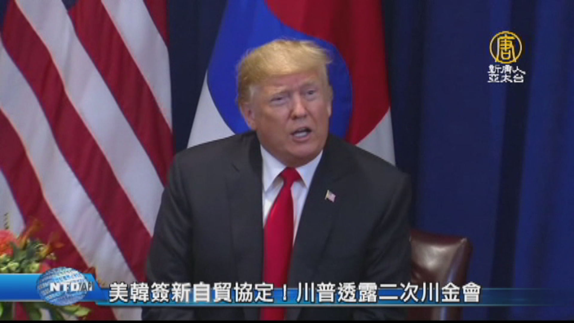 【新唐人亞太台 2018 年 09 月 25 日訊】早安新唐人,來看到國際最新消息,美國總統川普在紐約聯合國大會上,和南韓總統文在寅舉行雙邊會談,雙方簽署了修訂版的美韓自由貿易協定。同意美方延長對南韓貨卡車課徵關稅及輸美鋼鐵配額減少等。川普還對記者透露,很快就會有第二次川金高峰會。另外,美、歐、日貿易代表將在當地週二時間,舉行三方會議,會議目標是發展新的貿易規則,促使中共停止「不顧市場的政策」。