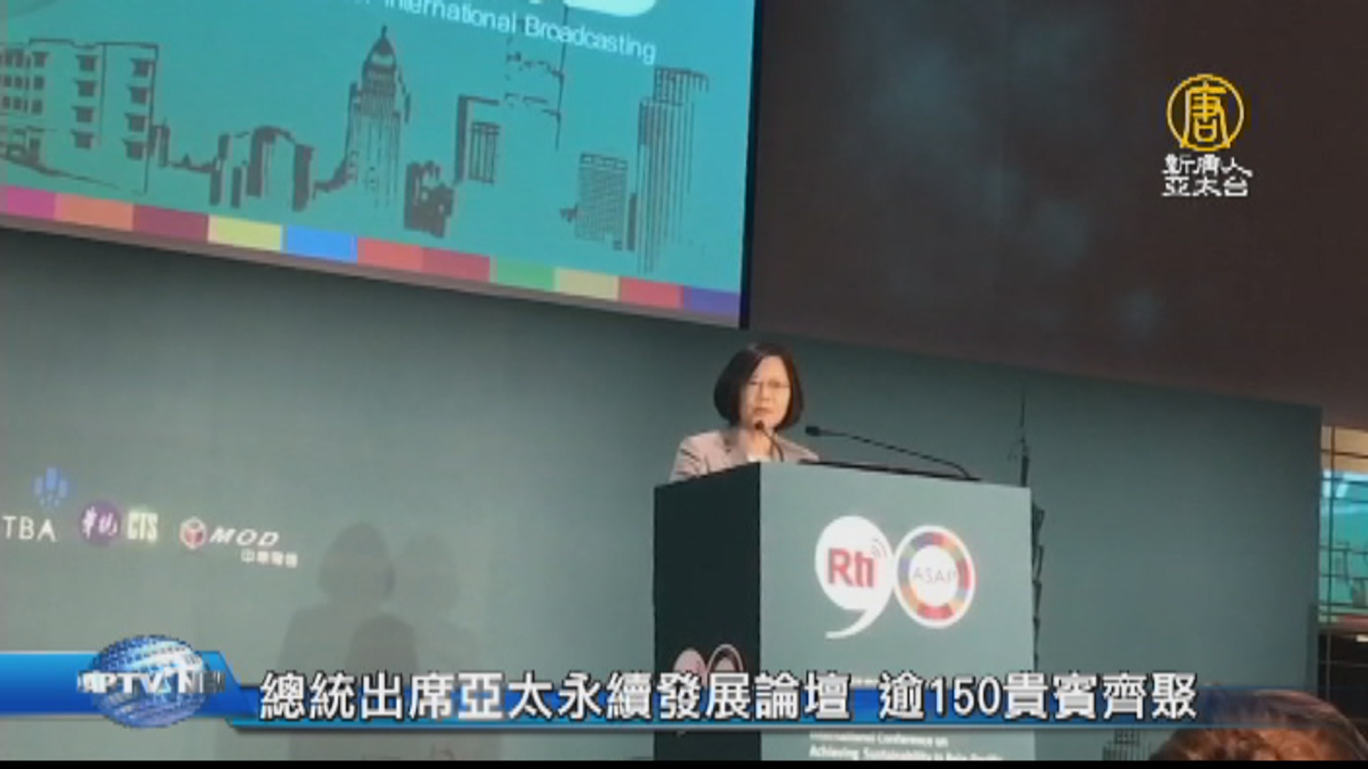 中華民國總統 蔡英文:「今天是中央廣播電臺創臺90周年,央廣是特別以「永續」為主軸,跟國際廣播協會,一起辦理亞太永續發展的國際論壇。」