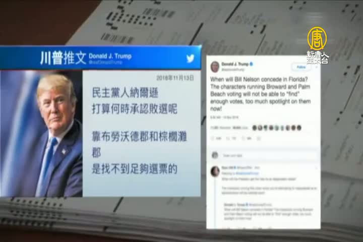 川普對此高度關注,他在週二的推文中稱「民主黨人尼爾森打算何時承認敗選呢?靠布羅瓦郡和棕櫚灘郡是找不到足夠選票的。」
