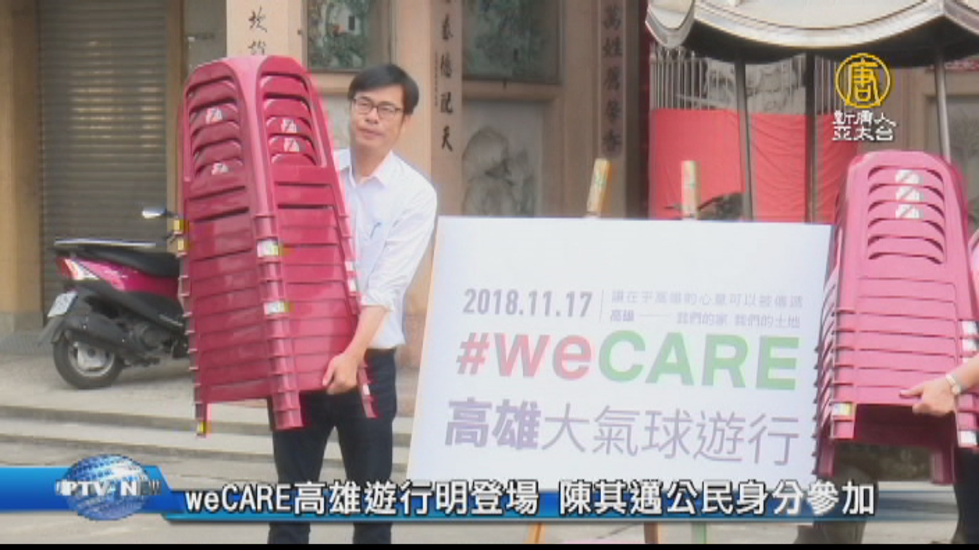 【新唐人亞太台 2018 年 11 月 16 日訊】好,選戰倒數8天,在高雄,除了兩方候選人全力衝刺,weCARE高雄聯盟,明天還將舉辦大遊行,訴求是,認同高雄價值,對抗網路霸凌;今天,民進黨市長候選人陳其邁也表態,要以公民身分參加。