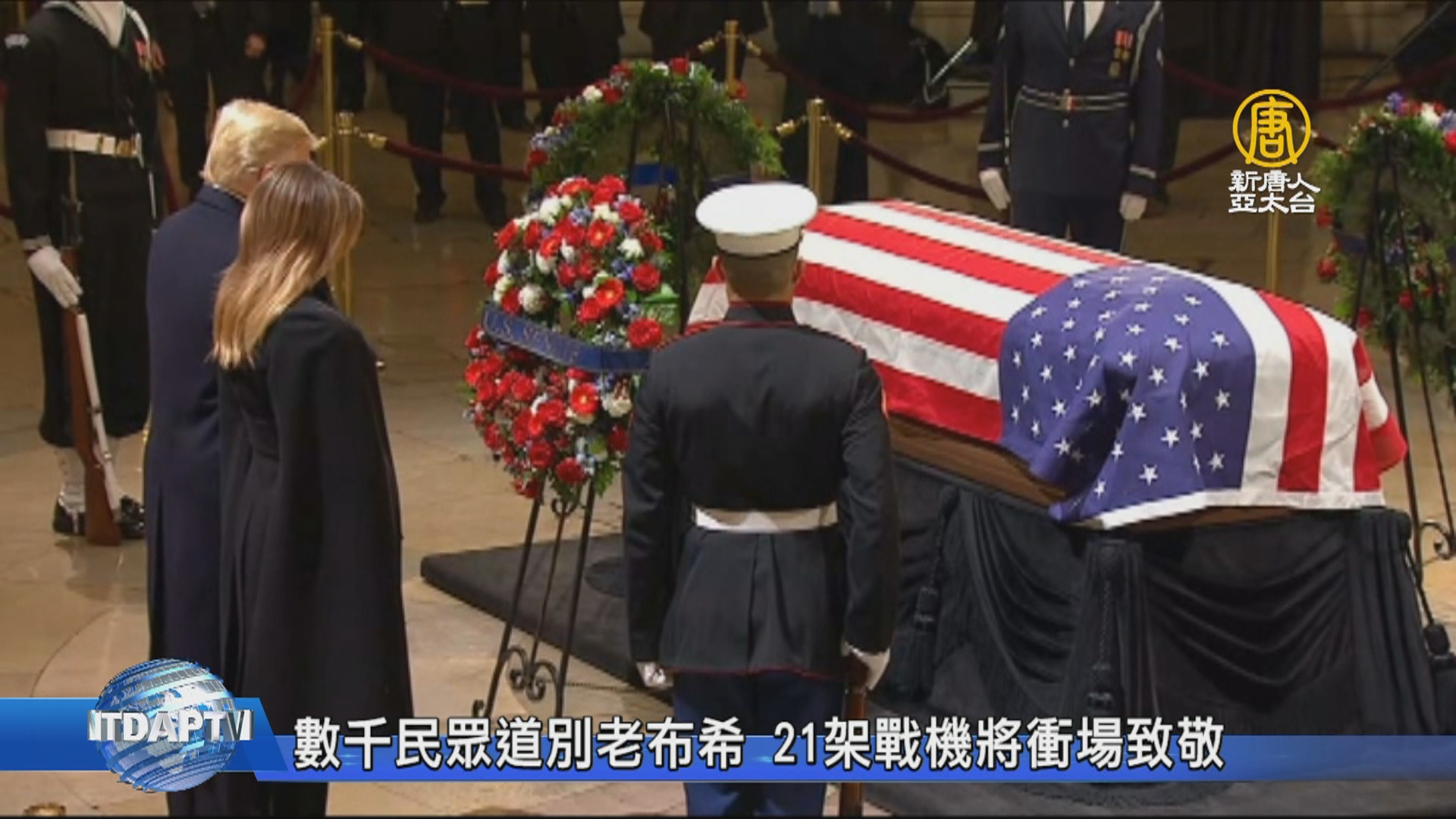 【新唐人亞太台 2018 年 12 月 05 日訊】歡迎回來。美國已故總統老布希,預定美國時間5日,在華盛頓國家大教堂舉行國葬。海軍飛行員出身的老布希,是最後一位打過二戰的美國總統。在葬禮當天,美國海軍將以史無前例的21架戰機衝場,向老布希致上最後敬意。