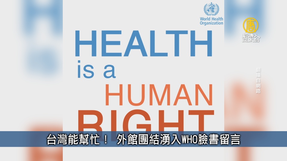 世界衛生組織在Facebook上發表一段影片,內容是說「健康是一種基本人權」,而且不限何處、何人。除了台灣外交部帶頭發言,標註「#TaiwanCanHelp」表示台灣能幫忙外,外館的臉書粉絲專頁也紛紛留言,強調台灣願意盡一份心力。