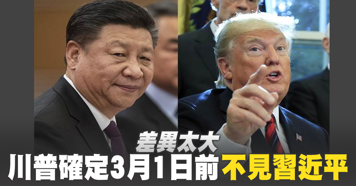 據路透社報導,川普總統週四證實,在3月1日美中貿易談判的最後期限前,他不會與習近平會面。意味著北京的期望落空。